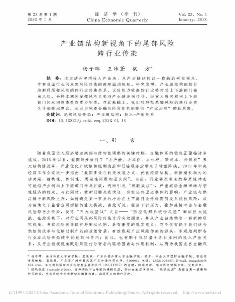 1、王姝黛(通讯作者),《产业链结构新视角下的尾部风险跨行业传染》,《经济学(季刊)》2023年第1期