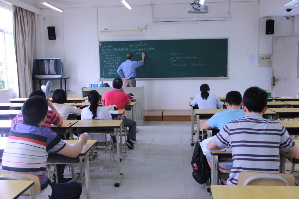 本网讯 4月20日下午,太阳城“云山讲座教授”易法槐教授系列讲座之金融随机控制讨论班第三讲于南校区教学楼A座302室开讲。易法槐教授在本讲中主要讲授了Huygen Pham 著“Continuous-time StochasticControl and Optimization with Financial Applications”第三章。公司党委书记马庆华教授以及师生代表出席讲座。讲座由马庆华主持。