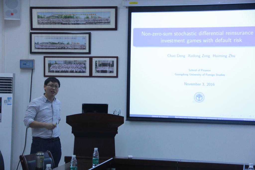 本网讯 11月3日下午,公司在南校区教学楼B304室召开太阳城云山学者双周论坛第二讲。云山青年学者邓超博士就《含违约风险的非零和随机微分再保险与投资博弈》做分析报告。公司副经理姚海祥教授及师生代表出席讲座。