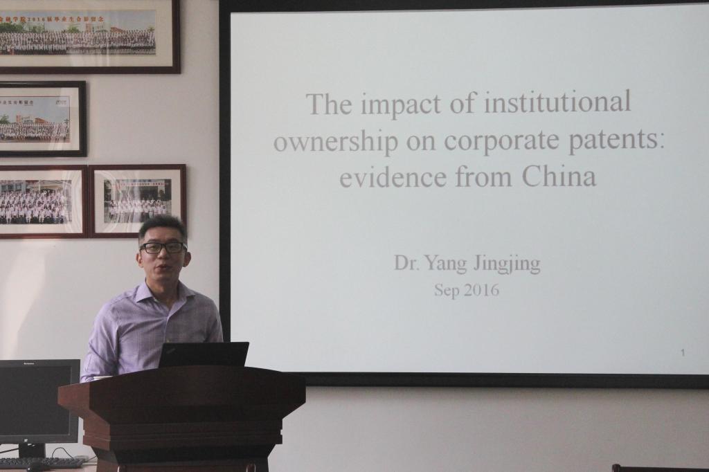 杨菁菁副教授分享了“机构投资者对公司专利权的影响:来自中国的经验证据”的研究成果,主要检验了不同类型的机构投资者对上市公司创新行为的影响。该研究将机构投资者分成三类:本土证券投资基金、被动的机构投资者(包括保险公司及社保基金)以及境外的机构投资者,并使用上市公司专利权的数量以及专利权的申请数量来衡量上市公司的创新能力。此外,该研究分别针对实用新型、外观设计和发明专利这三类专利权进行了实证检验,最后提出监管机构应该继续从政策层面推进证券投资基金发展的政策建议。