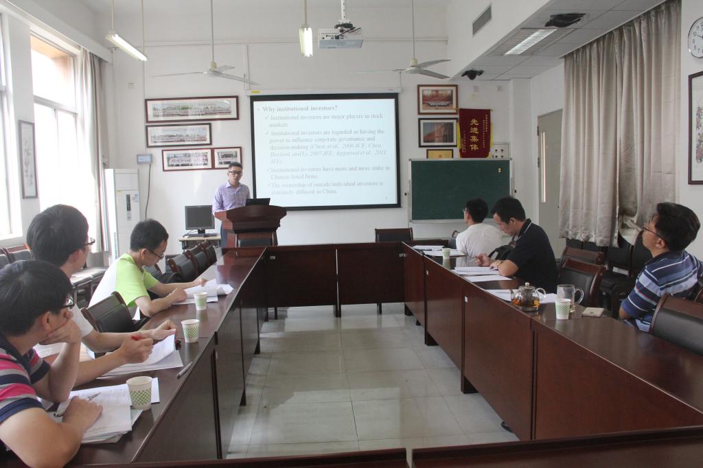 本网讯 9月21日上午,江西师范大学国际金融研究院经理、副教授杨菁菁做客公司金融双周论坛第二十讲,在南校区教学楼B304室与公司师生代表分享研究成果。公司经理易行健教授、副经理展凯教授、教师代表蔡伟宏、边文龙、邓超、吴柏毅等出席讲座。
