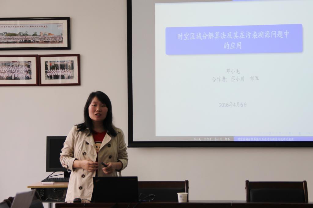邓小毛博士分享了“时空区域分解算法及其在污染溯源问题中的应用”的研究成果,主要从污染溯源研究背景、溯源问题计算、数值算例三个方面进行阐述。在溯源问题计算方面,她着重介绍数学模型、时空散落格式和并行Krylow-Space-Schwarz算法;在数值算例部分,她重点介绍测试环境、各种污染源重建效果、并行效率测试等三个方面的内容。最后,她对时空区域分解预条件子、多水平时空区域分解预条件、对二维三维区域各种源建立统一的优化框架以及在超级算机系统上获得良好加速比等方面进行总结。