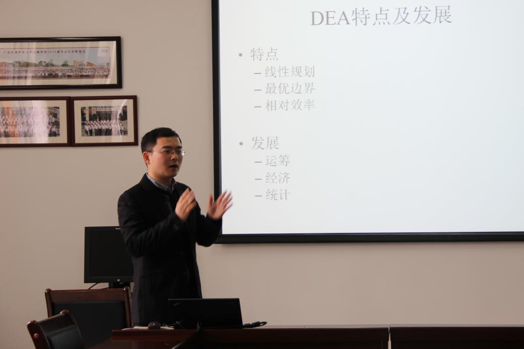 本网讯 1月12日上午,暨南大学政治经济学的朱宁博士和华南理工大学应用数学的李仕明博士做客公司金融双周论坛第十讲,在广外南校区教学楼B304太阳城会议室与公司师生代表分享研究成果。公司党委书记马庆华教授、副经理展凯教授、金融学系主任崔萍、大学数学教学部主任张建梅及公司教师代表出席讲座。