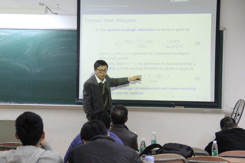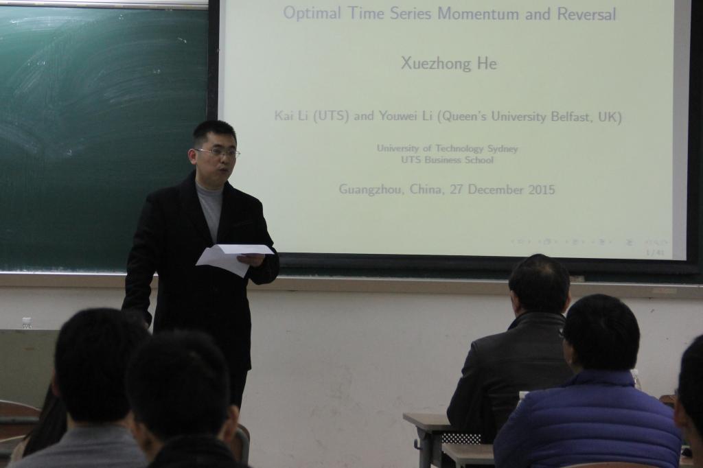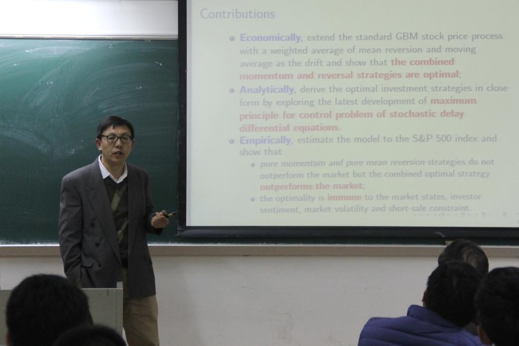 本网讯 12月27日,悉尼科技大学商公司何学中教授应邀参加公司的学术讲座,分享主题为“Optimaltime series momentum and reversal”的研究成果。该讲座在南校区教学楼A座402举行,由公司副经理姚海祥副教授主持,公司师生代表参加讲座。