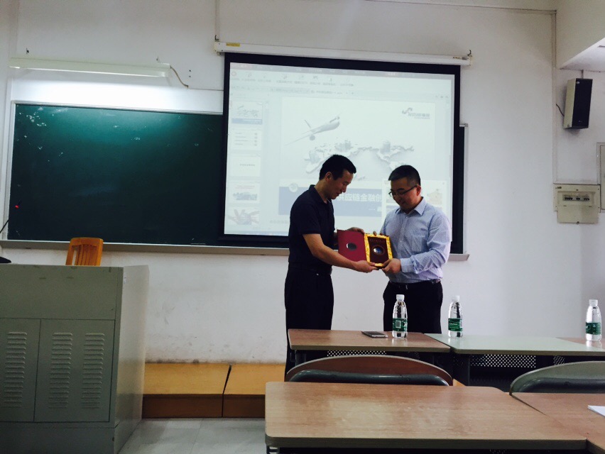 展经理向姜总赠送纪念品姜总开门见山地讲述了什么是供应链金融,通过银行、电商平台、供应链治理等三个视角将供应链各环节的优势展现在同学们面前。与此同时,他还帮助员工区分套利套汇、贸易融资、物流金融和供应链金融之间,加深了员工对供应链概念的理解和掌握。