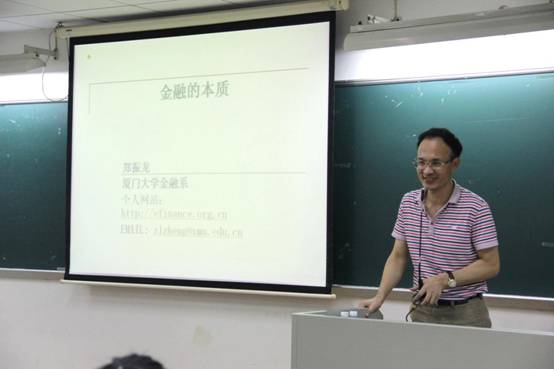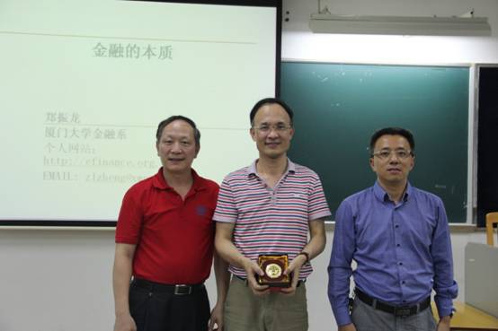 本网讯 9月10日,厦门大学证券研究中心主任郑振龙教授应邀做客广外建校50周年系列学术活动之广外金融论坛第五讲,在南校区教学楼F209课室为公司师生做了专题讲座,分别从“合作、资源、药方、信息”四个独特的视角,深入浅出地解读了“金融的本质”。