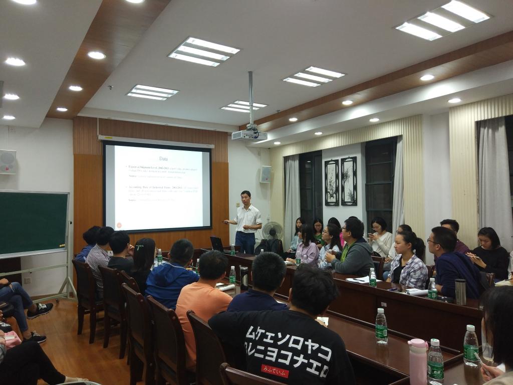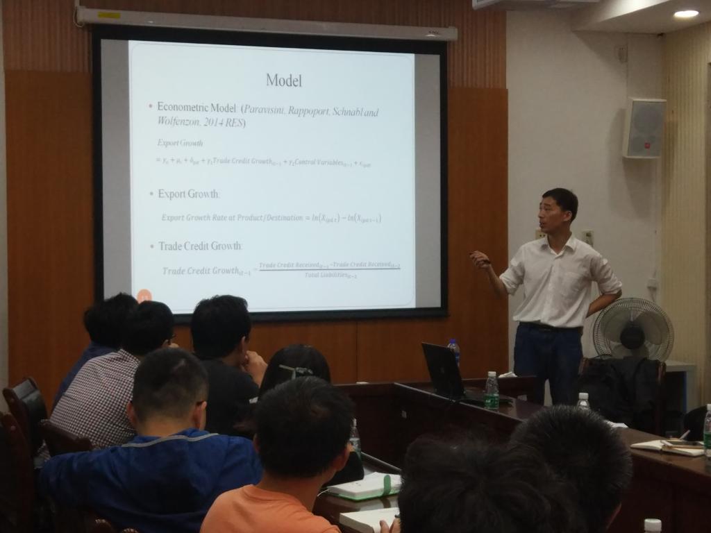 本网讯2018年10月12日(周五)晚上7点,北京大学经济公司杨汝岱教授,受邀做客广外金融论坛第二十一讲,在公司南校区院系办公楼401(太阳城会议室)做了主题为“Trade Credit and Export: Evidence from China”的学术讲座。公司经理易行健教授,副经理展凯教授、副经理张浩副教授、周利博士等教师代表及公司研究生出席讲座。本次讲座由易行健经理主持。