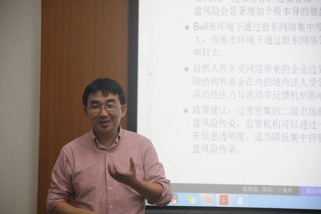陈海强教授在讲座中分享了他基于A股市场数据对“股东网络是否加剧崩盘风险”的研究。在讲座中,陈海强老师详细分享了他们的研究步骤,包括研究思路、数据选取、实证研究等。他们基于A股上市公司2003至2016年十大股东数据,构建了A股市场主要股东网络。具体而言,将拥有一个或多个共同十大股东的公司在网络中定义为相邻公司。基于该网络,计算了多个网络中心度特征变量来刻画特定股票在股东网络中的重要性。同时,利用个股回报率数据,计算了回报率负偏度和股价上升阶段和下降阶段波动率的差异作为崩盘风险的测度。通过空间面板回归分析,发现个股的崩盘风险与其在股东网络中的重要性存在正相关关系,而相邻个股的崩盘风险也会显著增加个股本身的崩盘风险。在考虑了市场形态、股权流通性质、股东类型以及去除“国家队”影响等因素之后结果依然显著。结论认为市场过度密集的股东网络关系可能增加大股东与中小股东之间的信息不对称性,有利于大股东通过关联交易降低公司信息透明度,从而加重个股崩盘风险,而“近朱者赤,近墨者黑”的效应也使得投资者应该警惕股东网络通过波动率反馈或流动性渠道带来的极端风险。监管机构可以通过一定的监管措施,如增加信息透明度、适当降低集中持股等方法来降低股东网络造成的崩盘风险。