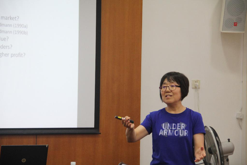 张丽宏教授主要围绕“金融科技对金融市场的影响”进行了学术报告,文章使用了“网络促进的反馈交易均衡模型(An Equilibrium Model of Internet-Facilitated Feedback Trading)”,讨论当市场非有效的情况下,基于金融科技的反馈交易策略(Different feedback strategies)能够检查市场价格偏离基本面的程度。研究发现,市场内部人员使用反馈交易策略将会获取更高的利润;对于政策制定者而言,则尤为需要注意市场深度(Market depth),价格总会存在高估或低估的情况,正向的反馈交易策略会普遍减缓价格波动的趋势;而投资者需要特别留意市场高估的情况,原因在于当市场高估时,投资者不仅面临的风险高,并且资产组合的收益回报率低。