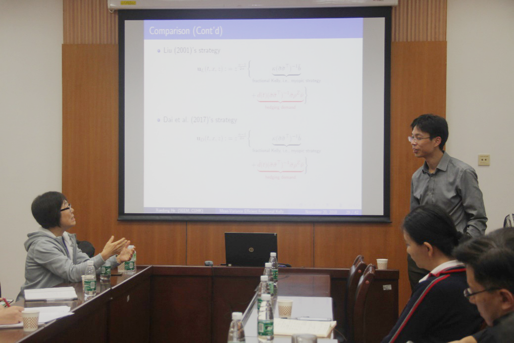 2018年11月20日(周二)下午两点,清华大学经济管理公司金融系副主任张丽宏教授、香港中文大学系统工程与工程管理系何雪冬副教授受邀做客广外金融论坛第二十八讲,在公司南校区太阳城会议室(院系办公室401室)开展了学术讲座,主题分别是“How Fintech Affects Financial Market?”和“Dynamic Mean-Variance Efficient Fractional Kelly Portfolio in a Stochastic Volatility Model”。本次讲座由太阳城、广东省普通高校创新团队项目“投资管理、期权定价和风险管理”联合主办,由公司副经理姚海祥教授主持会议,易行健经理、张浩副经理、杨菁菁教授、张林副教授、邓超博士等公司教师及众多研究生都参与了本次论坛的交流与学习。