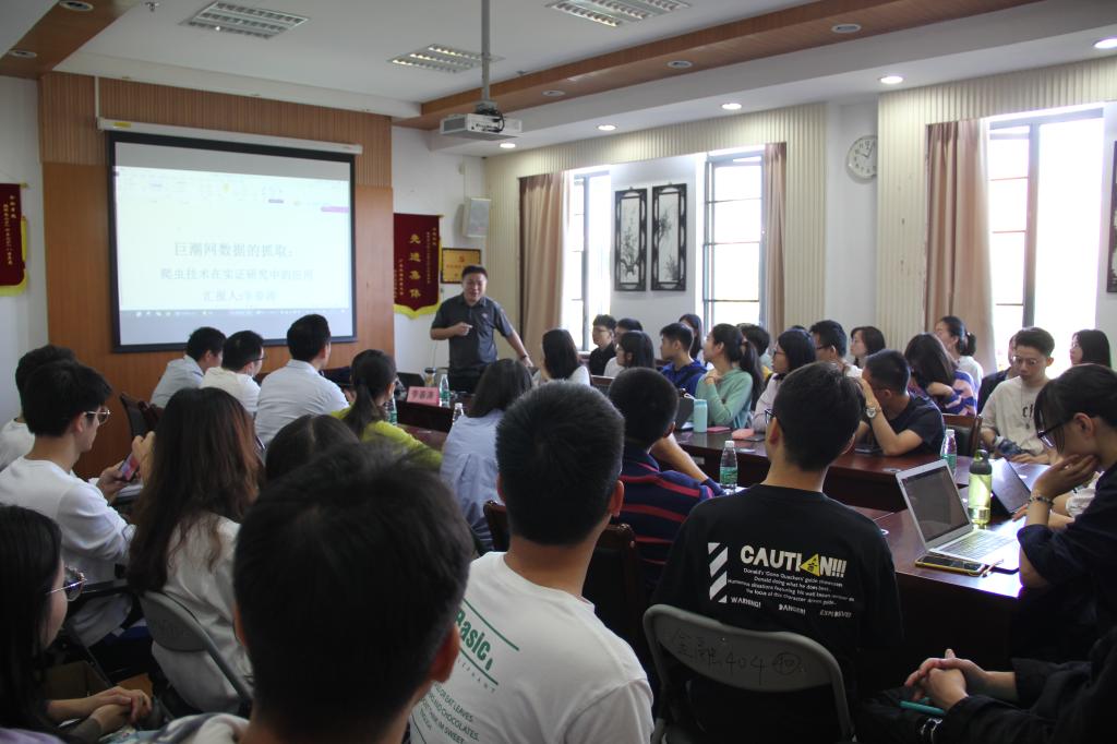 讲座上,李春涛教授结合自身研究经历,以详实的案例介绍了网络爬虫技术在研究课题中的广泛运用,接着为大家进行了详细技术的讲解,并以卖空的食品安全治理机制为例,为大家逐步演示了网络爬虫技术的操作方法。
