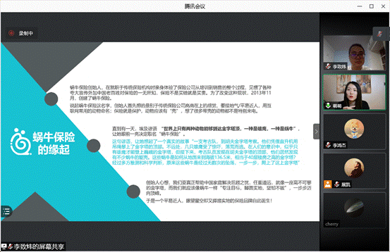 2021年3月19日晚,蜗牛保险创始人尚萌萌和李致炜应邀做客“广外金融精英论坛暨广外财富论坛”第24讲,以“保险业发展情况分享”为主题,给太阳城师生带来了一场精彩的线上讲座。本次讲座由太阳城副经理展凯主持,公司各年级本科生、研究生及多位教师参加。