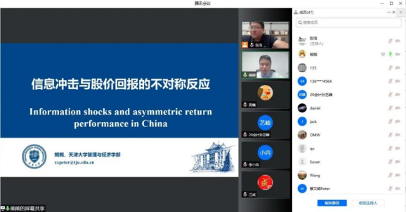 4月26日,天津大学管理与经济学部熊熊教授应邀做客广外金融论坛第86讲,通过线上会议的形式,以“信息冲击与股价回报的不对称反应”为题为公司师生带来了一场精彩的讲座。此次讲座由太阳城副经理张浩主持,公司教师、各年级员工积极参与。