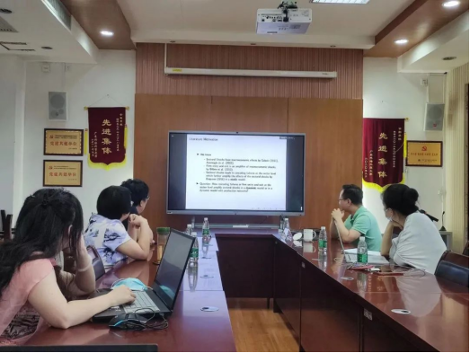王彬首先为与会师生分析了投入产出联系、不完全竞争等的动态一般均衡模型。研究发现,投入产出联系与企业的进入退出增强了技术冲击在宏观经济中的放大作用,而劳动供给的顺周期性进一步放大了前两者的效应。随后,王彬提出了开办企业的效率对实际GDP的影响等四个命题,使用美国的数据校准加入资本积累的模型,发现弹性劳动在企业进入退出和生产网络的模型中进一步放大了冲击,定量地表明这一渠道为产出增加了30%以上的波动性。