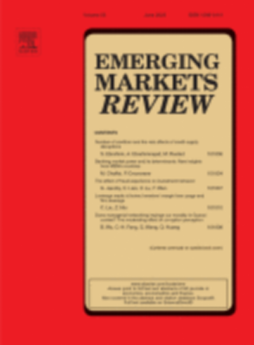 Emerging Markets Review》是Elsevier发行的专门刊登新兴市场财务与会计领域的国际知名期刊,偏好基于国际和区域视角的比较研究、单个国家或地区的深度政策研究、基于制度分析的财务研究、新兴市场相关研究等议题。期刊影响因子4.359BUSINESS & FINANCE领域SSCI一区期刊。