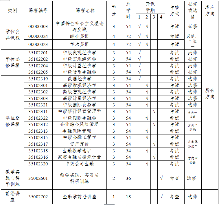 课程分为学位公共课、学位专业课和公共选修课。学位公共课是指根据教育部要求硕士研究生必修的政治理论课和外国语(针对外语专业指第二外国语)。其中,政治课3学分,外国语4学分,共7学分。