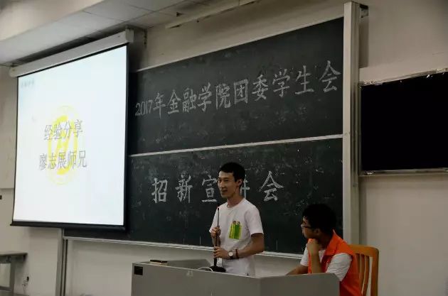 “太阳城团委员工会,欢迎大家的到来!”在精彩的团学视频介绍之后,同学们都对团学有了直观地了解。紧接着,在两个会场内,学术部部长吴玥霖和组织部部长陈颖然分别为同学们进行了更为详细的团学介绍,并真诚地希望同学们能够加入到团学的大家庭,与金融团学一起共同进步。金融团学自成立至今,已经快三年。已经是“元老级”的一届一任团委副书记廖志展师兄和二届二任员工会主席张佳成师兄来到会场。他们结合自己的经历为同学们分享干货,同时鼓励同学们大胆地尝试,不畏惧选择也不要轻率地做出决定。