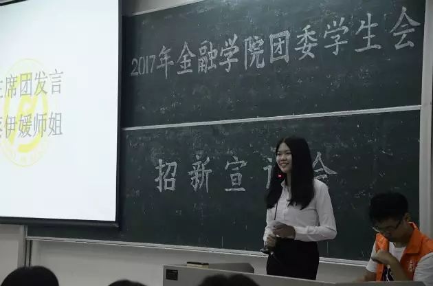 从自身经验出发,团委副书记蔡伊媛和员工会主席许泳仪分别在两个教室对新生们的到来表示感谢与感动。并讲述了大一一路走来的心路历程以及一年多以来的社团生活的收获,并寄愿同学们不要在大学中留有遗憾,勇敢地去把握每一次机会。