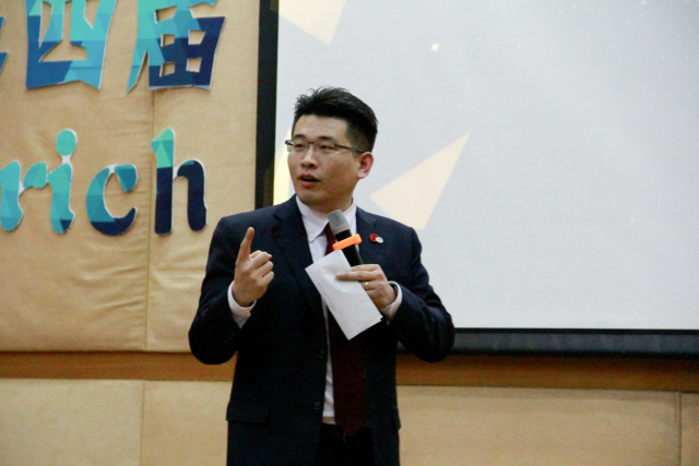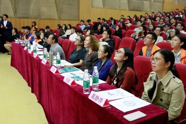 在中场游戏“word to world”后,比赛进入重头戏——第三环节“APP发布会”。本次发布会展示的APP最大特点就是新颖、小众,如ONE、果酱音乐、夸克浏览器、旅行箱……八组选手化身软件公司CEO,运用英文生动全面地向评委观众展示其产品,吸引大家下载使用。为了让评委和观众更充分地了解APP的功能和特有的优势,CEO们各出奇招。“会打篮球的猫”组合,围绕其APP产品“ONE”的口号“One is All, All is one”,向观众阐释其设计理念和功能取向。“To The Final”组合,通过视频演示,让观众对“夸克浏览器”的使用有了直观的认识。“真正的大腿”组合则从专业化的角度,分析了“果酱音乐”的产品功能以及针对的用户群体,使观众对该APP有了更深的了解。产品介绍过后,评委老师还从使用者的角度,对场上选手作出了一些提问,选手们俨然产品开发者一般,灵活应对,认真回应疑问。比赛期间,还穿插了中场游戏“sound to soul”,让观众分辨出音频、视频中的英文歌曲和电影,同学们积极参与,乐在其中。