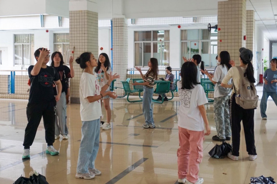 这十二个游戏不仅拉近了成员间的距离,而且增加成员们的默契程度。在“你说你比我来猜”中,一队里两人比划其余人猜,这既考验比划成员的表演力,又考验了成员间的默契;在“猜歌名”中,各队成员需根据音乐猜测对应歌名,耳熟能详的歌曲让各队成员沉浸其中,也让成员们飞速调动脑内曲库进行答题;在“彩球飞舞”中,成员们需接住前一人抛出来的球,弹起的彩球让游戏中的成员们欢笑连连;在“跳长绳”中,成员们排队依次跳绳,在简单的活动中收获了集体协作的快乐。趣味游戏的同时,成员们的反应能力和默契度也在欢声笑语中悄然提高。