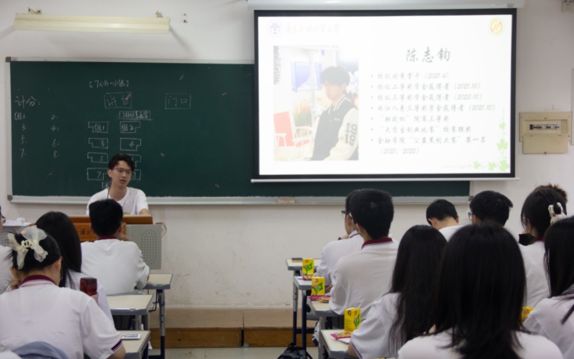 上午,桂中师生一行首先参观公司校史馆,了解公司建校历史和办学理念。随后,公司举办了“优秀学长学姐座谈沙龙”,“双料员工”、高中毕业于桂中的公司本科生、团委秘书长李婉怡以及优秀员工代表黄广钜、陈志钧向桂中学弟学妹介绍了丰富多彩的大学社团生活、校园品牌活动以及自己的专业学习情况,并有针对性地分享了学习心得以及兼顾学业与员工工作的理念与方法。此外,团委实践部组织的堇熙服务队义教组成员莫恩岚介绍了近两年在桂中开展金融素养主题夏令营的基本情况,鼓励同学们积极参与,在丰富精彩的活动中提升自身的金融素养。