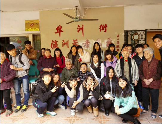 一位爷爷给志愿者们表演了拿手的粤剧后,向志愿者们挥手告别;一位婆婆拉着一名志愿者的手,难舍难分,让志愿者有空再来看望他们老人……