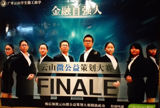 2015年1月4日,首届云山微公益策划大赛决赛在员工活动中心负一层的云山水榭隆重举行。到场的嘉宾有:云山微公益基金会负责人,云山员工会会长,子惠康复机构董事长,星语康复机构董事长,赞助商韩后的代表人等。
