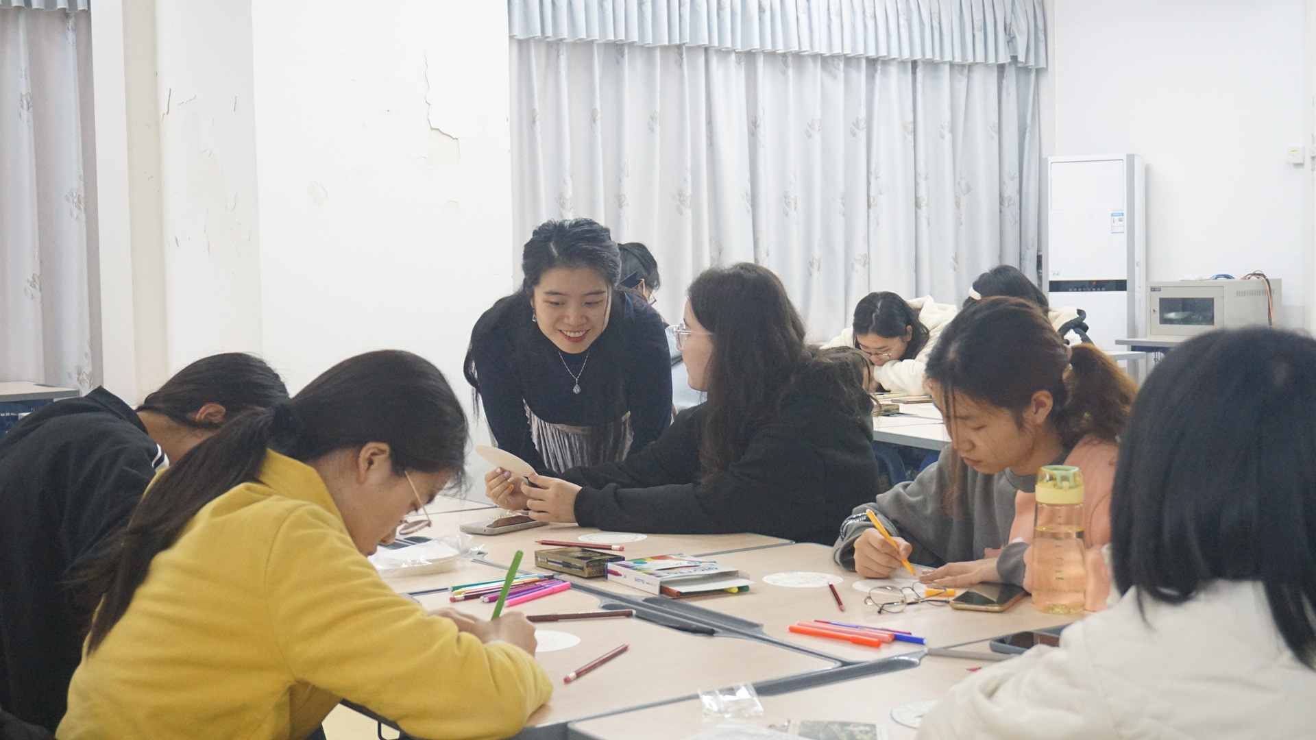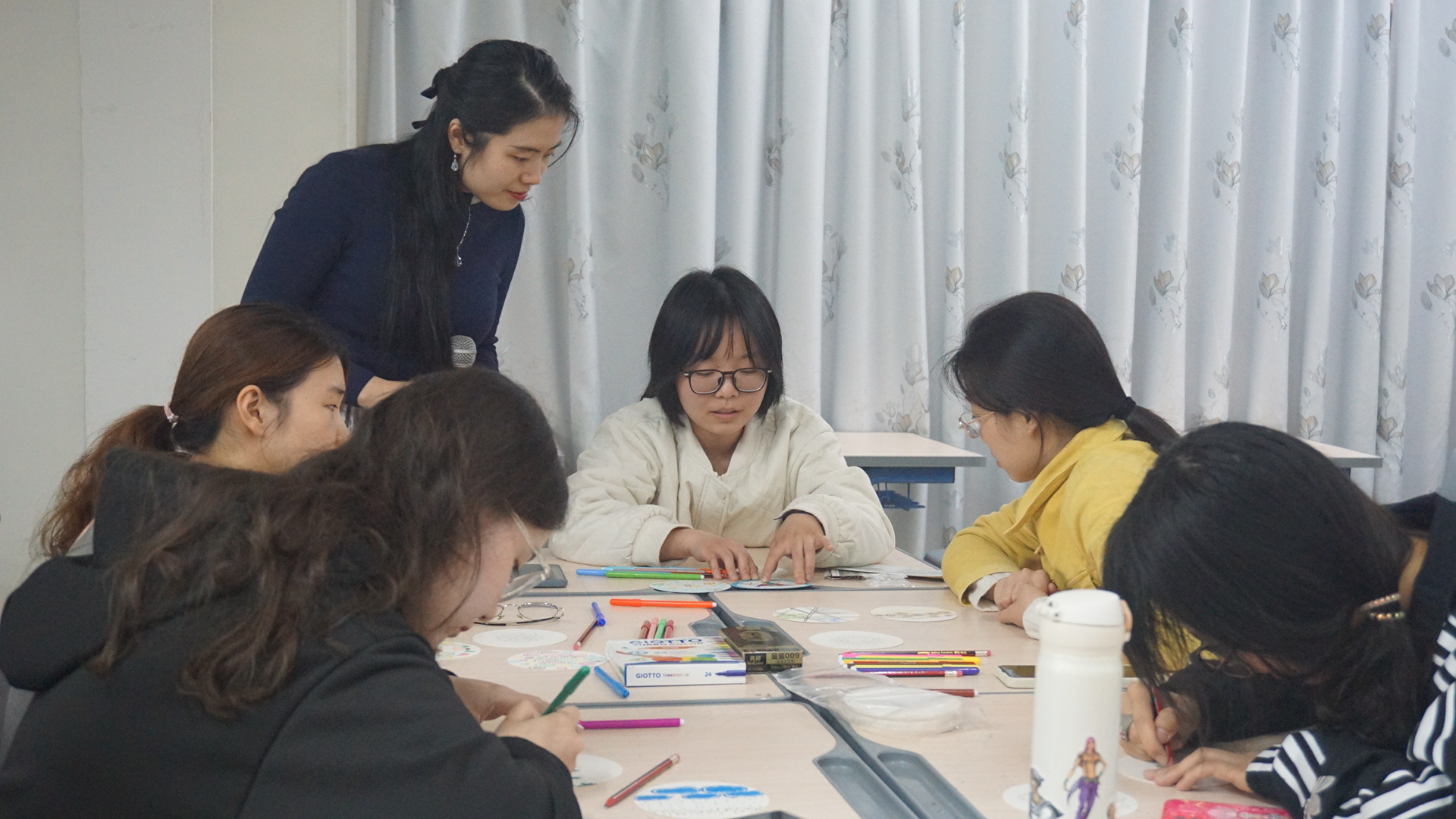 梁倩蓉在引导同学们作画