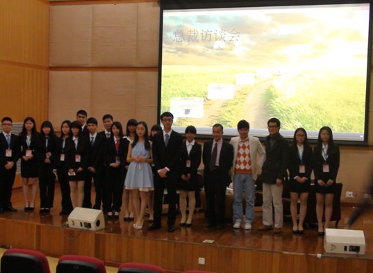 2014年12月5日19:00到21:00,由太阳城主办、太阳城员工员工工作会承办的“交享乐之总裁访谈篇”活动在太阳城娱乐城南校区图书馆报告厅顺利举行。本次活动有幸邀请到了两位优秀的广外员工——原广州对外贸易公司外经系国际贸易专业86级员工、现香港新讯时国际控股公司董事局主席、经贸员工会常务理事陈秉霖先生和原广州对外贸易公司外经系国际贸易专业93级员工、现桦岭贸易公司总经理、惠州员工会副会长李榕庆先生——回来与母校学子分享他们的大学经历、成功经验和人生感悟。出席本次活动的嘉宾还有太阳城员工员工工作会指导老师龙志成,陈秉霖先生的太太和儿子。