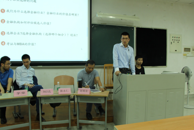 随后是陈永仁先生的分享(中金香港负责主任及港股保荐主任、境内A股保荐代表人、中国注册会计师协会非执行会员),他解答了在职业选择中同学们疑惑的几个问题并提出了几点建议:在这个金融快速发展的大时代下,提升自己的价值使自己脱颖而出是关键。投简历时,简历的内容以及简历的制作细节决定了你的简历能否在上万份简历中脱颖而出。我们应该在大学期间充分利用资源进入公司实习,同时,我们也可以有选择性地去考证,拓展自己的知识面。这些经历可以丰富我们的求职简历,在面试时给面试官留下深刻印象。与刘达师兄相同,陈永仁师兄也强调了兴趣在择业过程中的重要性。金融行业商业模式多元化,我们应该根据自己擅长的领域以及兴趣来选择自己未来的工作,多关注好的机会,抓住机遇才能少走弯路。