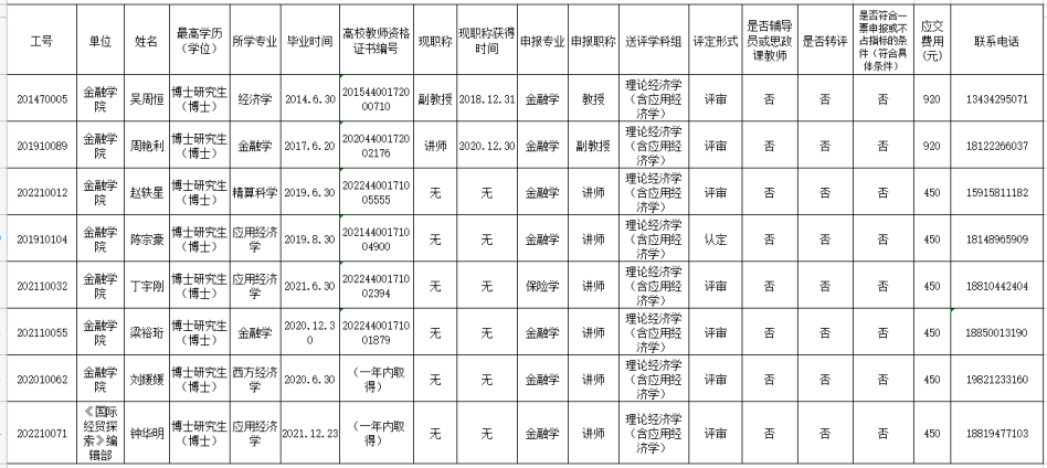 根据公司《关于开展2022年职称评审及认定工作的通知》(广外人〔2023〕8号)、《关于修改<太阳城娱乐城职称评审申报条件>和<太阳城娱乐城职称评审“一票申报”清单的通知>》(广外人〔2021〕38号)、《太阳城娱乐城职称评审办法》(广外人〔2020〕26号)等有关文件规定,在申报人员情况公示基础上,经资格审查和推荐评审,现将评审及认定推荐人员名单予以公示。公示时间为2023年3月29日至2022年4月4日。申报人全部资料可到院系楼400A(太阳城办公室)查询。