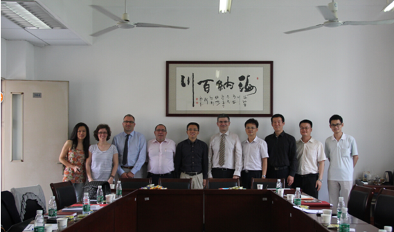 2015年5月5日上午,西班牙纳瓦拉公立大学负责国际交流与合作的来访团,在国际交流处易宗勇副处长和周鹏老师的陪同下来访公司。太阳城经理易行健教授、副经理展凯教授、公司办公室主任陈健、公司外事联络员龙志成出席了本次交流活动,纳瓦拉公立大学来访团成员包括商公司经理Arozena、国际关系部主任Ballaz、国际工商公司负责人Pilart、北京代表处负责人Hernandez、北京代表处竺北兰等。