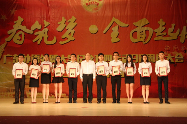 隋广军、卢景辉、校关工委主任冯益谦分别为国家级、省级获奖集体与个人,红旗团委、红旗员工会,以及优秀团务工作者和优秀员工社团指导老师颁奖。其中,公司学子在2014年“创青春”全国老员工创业大赛中获得全国银奖、金融学1202班获得广东省五四红旗团支部称号、金融学专业12级黄河获得广东省优秀共青团员称号;院团委员工会勇夺太阳城娱乐城红旗团委、红旗员工会称号。
