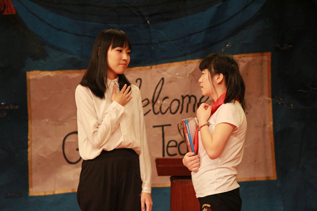 5月7日晚,太阳城首届英文戏剧大赛决赛在B8报告厅如期举行。在初赛中脱颖而出的6支班级队伍热情饱满,欲再次演绎属于他们的精彩。英文公司青年云山学者郑杰、英文公司教师郭岚、广东省话剧团、星海流行音乐系、民族声乐系表演课教师田竞以及外籍教师Kayla和Adam担任本次决赛的评委。同时公司党委副书记赵观音、团委书记毛竹、12级辅导员叶祥杰、11级辅导员林颖璐和14级辅导员龙志成等老师作为嘉宾出席当晚的比赛。