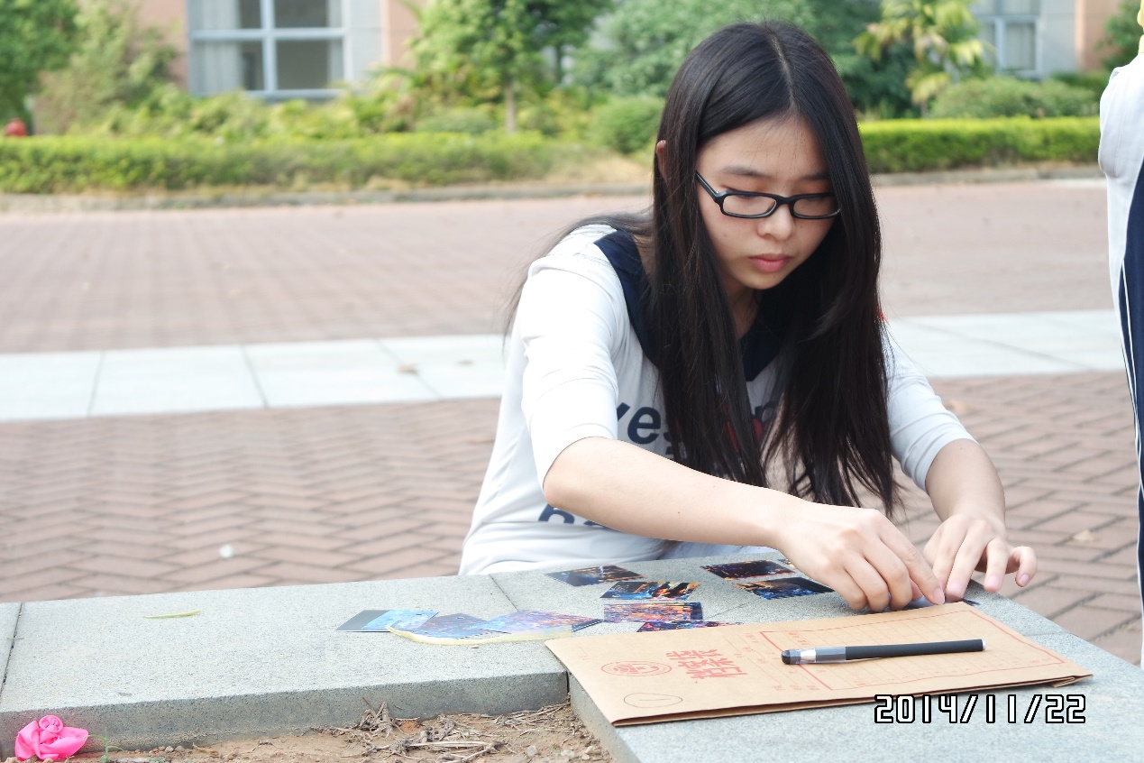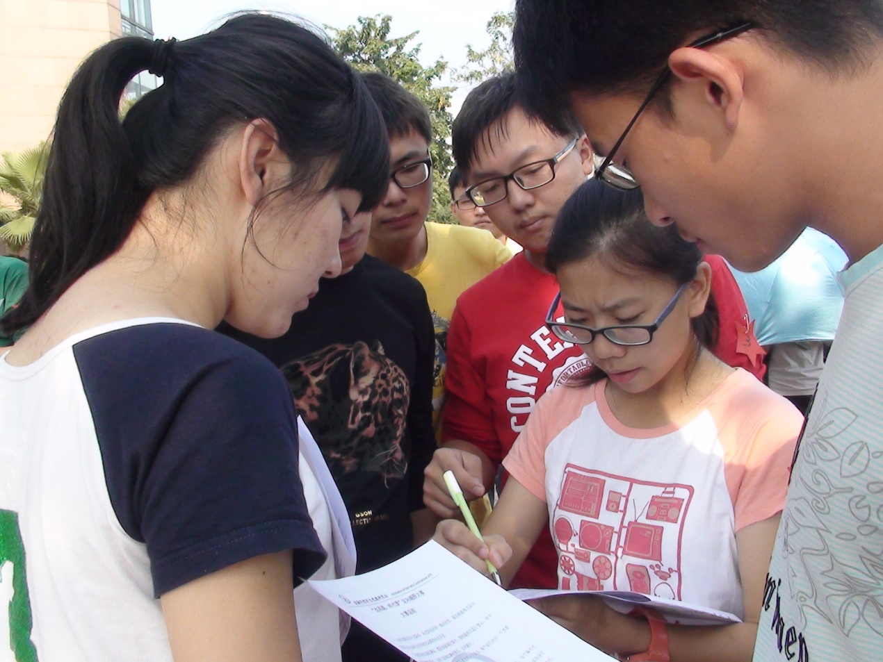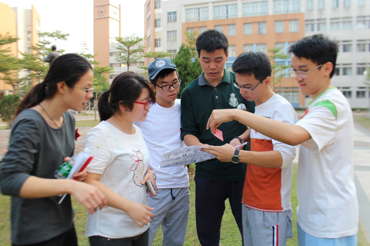13级金融员工党支部参赛队员专注思考任务卡答案,深思熟虑后再行动。神色凝重的队员们均在快速思考提示答案,从他们身上我们读出全神贯注,谨慎细致的求真态度。