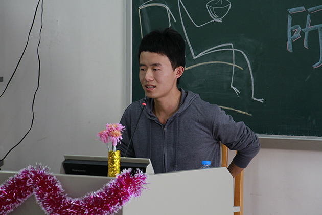 茶话会在一个温馨热闹的小游戏中开场。而后,范宇欣根据他自己这几年的经验,首先向我们谈到大学课程学习以及大学学习。他强调二者是有所区别的。范宇欣将预习、课堂、复习、兴趣作为大学课程学习的四个重点。“做全才而不是偏才”、“适当地学习”、“打好根基”则是大学学习的核心内容。范宇欣还根据自己在广外这几年的学习非常细心地将所有课程进行了归类,并介绍了各个课程应有的学习方法。在说到如何认识自我、发现自我、相信自我时,范宇欣强调在大学养成写日记的习惯很重要。日记可以记录自己的灵感,记录自己学习的历程。他还建议小鲜肉们制作一周的时间推进表,这个表可以让自己的生活更有规律,让自己的学习工作更有效率。此外,范宇欣对大一的学习、社团工作提出许多建议:第一,尽快确定自是否要修双学位与是否要当交换生;第二,关于社团,多则全,少则精;第三,多尝试,敢尝试;第四,适当的完美主义;第五,相信蝴蝶效应,相信自己所做的事对未来有作用,善于抓住身边的每个细节。“不让自己后悔。”则是范宇欣给予所有小鲜肉的忠告。