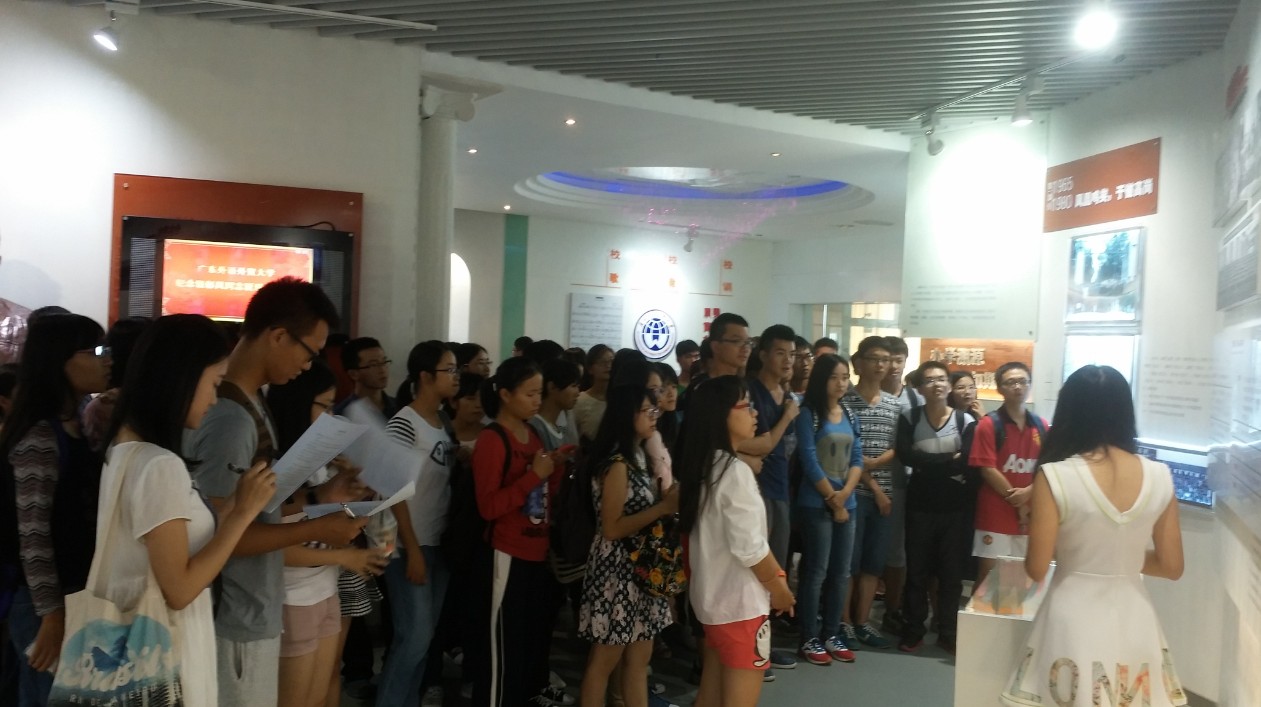 为增进新生对广外校史校情的了解,提升新生对公司的认同感,同时也为了促进年级同学们之间的交流,2014级于10月16日下午两点半至四点半组织全体新生分批次参观了校史馆。校史馆李韬老师和14级辅导员龙志成老师出席活动,与同学们一起接受校史教育。