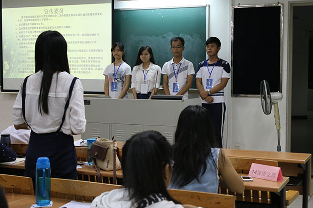 大会分七个环节。首先,由优秀团支部的团支书介绍团干工作经验。两位不约而同的谈到团日活动的重要性及组织活动时天气、人员安排等各方面需要注意的细节,为新团干成员提供了不少帮助。章浩珊还特意指出在团日活动中前期策划和后期总结的重要性,同时鼓励各位团干成员要以身作则且能有奉献精神。“不是集体给你带来什么,而是你给集体带来什么”,她如此说道。她谈到自己当时的经历时感慨,组织团日活动会很累,但你过后能发现真的有很大收获。随后组织部干事为团干介绍了团务工作、团组织活动、团干职责和义务等一系列团务知识。