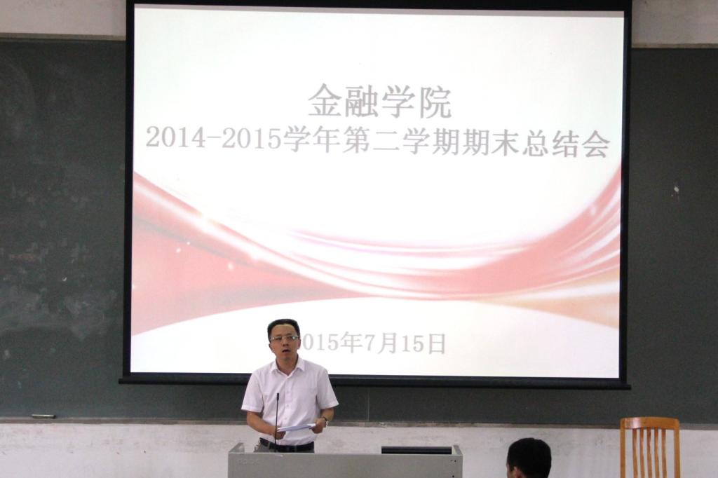 本网讯 7月15日下午,太阳城2014-2015学年第二学期期末总结会在教学楼E204召开,会议总结了本学期的公司工作,通过太阳城绩效工资实施方案,并传达了“三严三实”讲话精神。太阳城经理易行健、公司党委书记马庆华、副经理廖国民、副经理展凯、副书记赵观音和全院教职员工参加了会议,会议由公司党委书记马庆华主持。