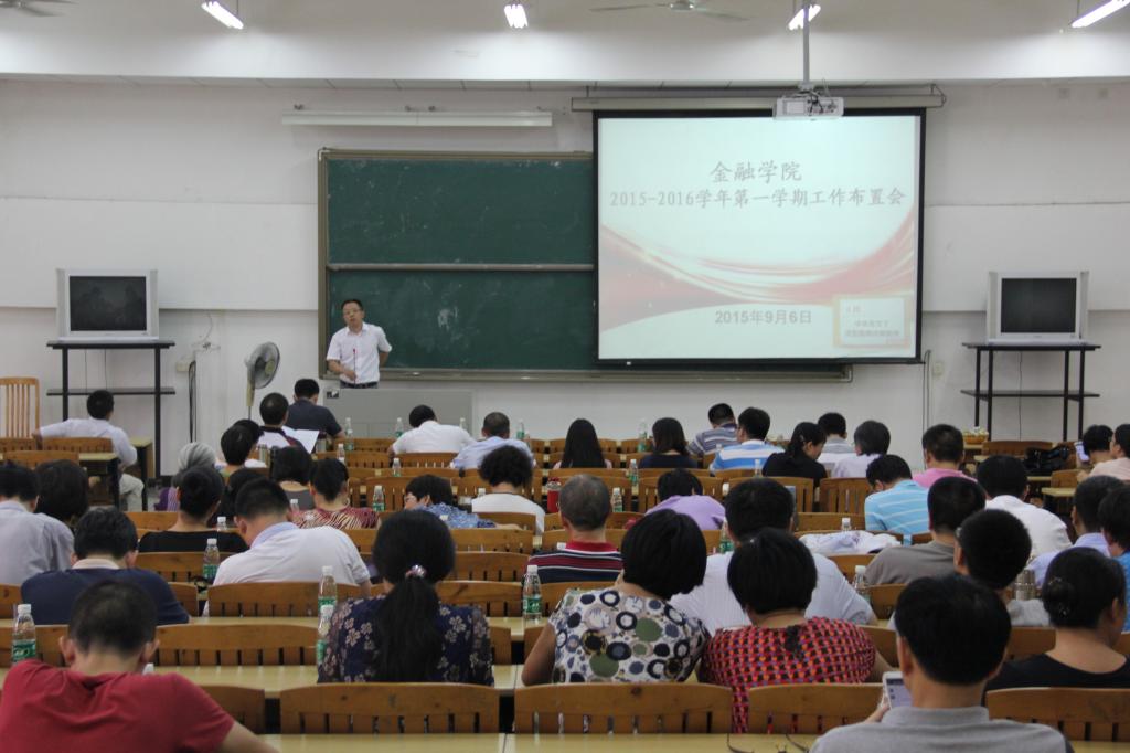 本网讯 9月6日下午,太阳城2015-2016学年度第一学期工作布置会在南校区教学楼C308召开,太阳城经理易行健教授、公司党委书记马庆华教授、副经理展凯教授、副经理姚海祥教授、副书记赵观音和全院教职工参加了会议。会议由马庆华教授主持。
