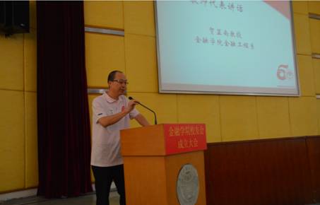 易行健介绍了太阳城的发展及基本情况,并希望今后金融学子能在各行各业做出更大成绩。教师代表邵学言教授、贺显南教授,员工代表94级国际金融班温琦女士分别发表讲话。邵学言教授是原国际经济贸易公司经理,也是金融学老教授,由于未能亲临大会,特意提前录音,回忆当年金融学初创的时光,表达对太阳城员工会成立的祝贺;贺显南教授及温琦员工的讲话,表达了对太阳城员工会成立的热烈祝贺。