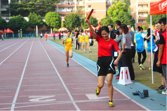 晴朗的天气为校运会涂上靓丽的色彩。新的一天意味着新的征程。巾帼女子们风采卓绝,看,烈日下身着红装的倩影,奔跑出流畅的弧线。朱泳镅先后摘获女子400米决赛以及400米跨栏决赛的桂冠,“相比去年,成长了许多,为公司取得荣誉是我的荣耀。”,作为太阳城在径赛中的首位金牌得主,赛后的她绽放出愉悦而自信的笑容;100米决赛后传来符惠娟第一的喜报,喜上加喜的是,在200米预赛中位居第三的她竟在决赛中斩获第一。可见,临场状态也是相当重要的。镜头转向最激动人心的接力赛场,那一棒传一棒的默契配合是速度与激情的接力,女子4×400接力初始稳居第一,最后一圈商公司的选手拼命赶超,眼看距离越拉越近,观众们悬着一颗心,同时也更加用力地为最后一棒朱泳镅呐喊助威,她率先越过终点线的那一刻,众人心中的石头才落了下来,随之而来的便是潮水般的喜悦呐喊,“金融第一!”颁奖台上,她们的脸上绽放出比阳光还灿烂的笑颜。女子4×100与金牌擦肩而过,位居第二“没有获得第一还是挺遗憾的,不过还行啦。”豁达的笑容,真情的吐露是她们对团队更高的要求。