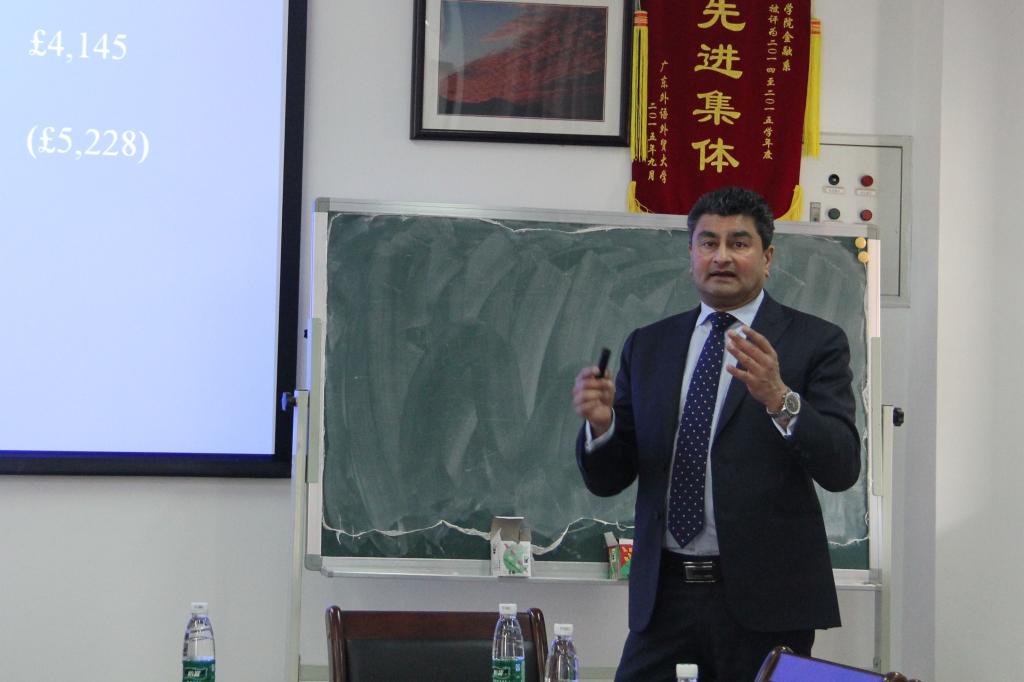 在最后的讨论环节中,Kishor Lodhia与师生们就国际会计准则在各国应用的可能性及其过程进行了探讨。此外,结合公司与英国莱斯特大学合作办学的事宜,师生们就自己所关心的问题与Kishor Lodhia教授进行了深入交流。