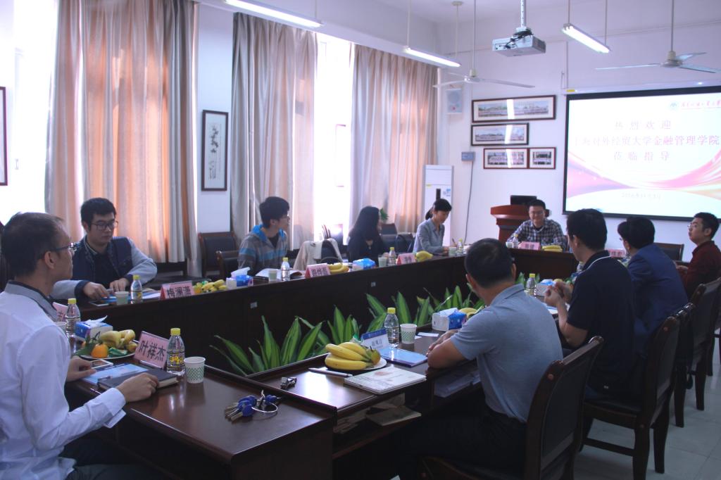 本网讯11月3日上午,上海对外经贸大学金融管理公司领导来公司交流工作。上海对外经贸大学金融管理公司经理兼书记凌婕教授,教师代表梅澜潇、陆烨磊和应婷婷,以及公司经理易行健教授,副经理展凯教授、姚海祥教授,党委副书记赵观音,办公室主任陈健,教师代表蔡伟宏、叶祥杰、龙志成等出席座谈会。