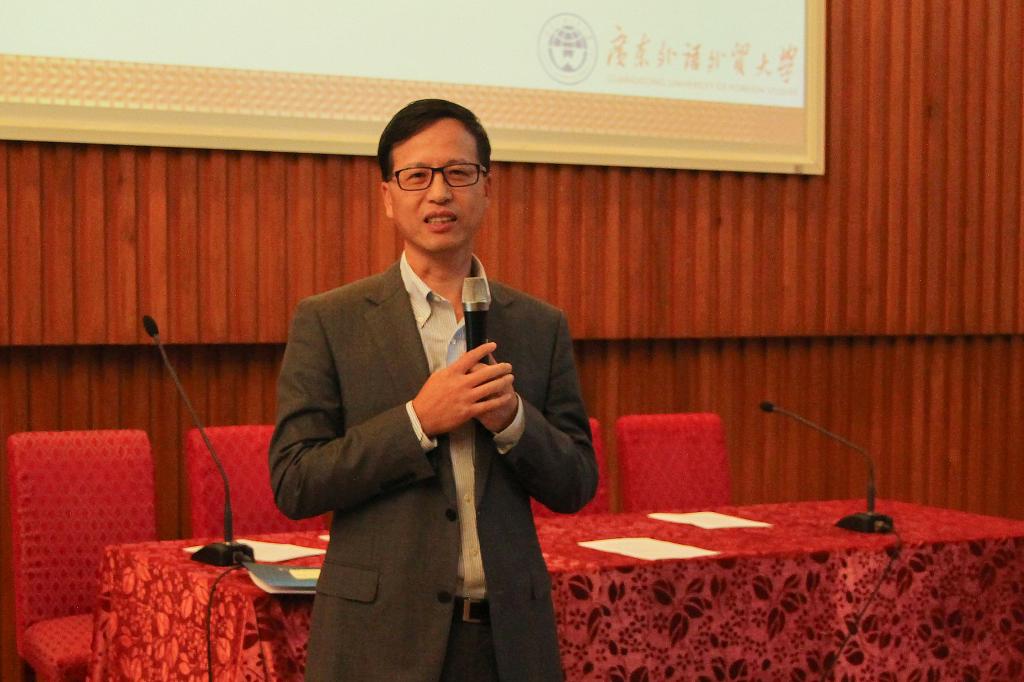 仪式首先通过视频展示了珠江人寿保险公司的企业文化与发展历程。胡国萍应邀上台介绍了珠江人寿保险股份有限公司的理念、保险行业的发展情况及保险工作者的奋斗经历。他希望老员工能够珍惜老员工活,积极面对社会,主动了解市场、保险行业以及金融行业,并结合自身经历激励同学们“选择学习保险能够为自己创造很大的成长空间和发展机会,欢迎同学们到‘珠江人寿’实习和工作”。