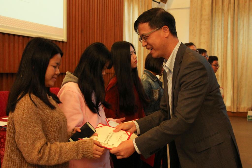 胡国萍为“珠江人寿关爱基金”奖学金获得者颁发证书 |