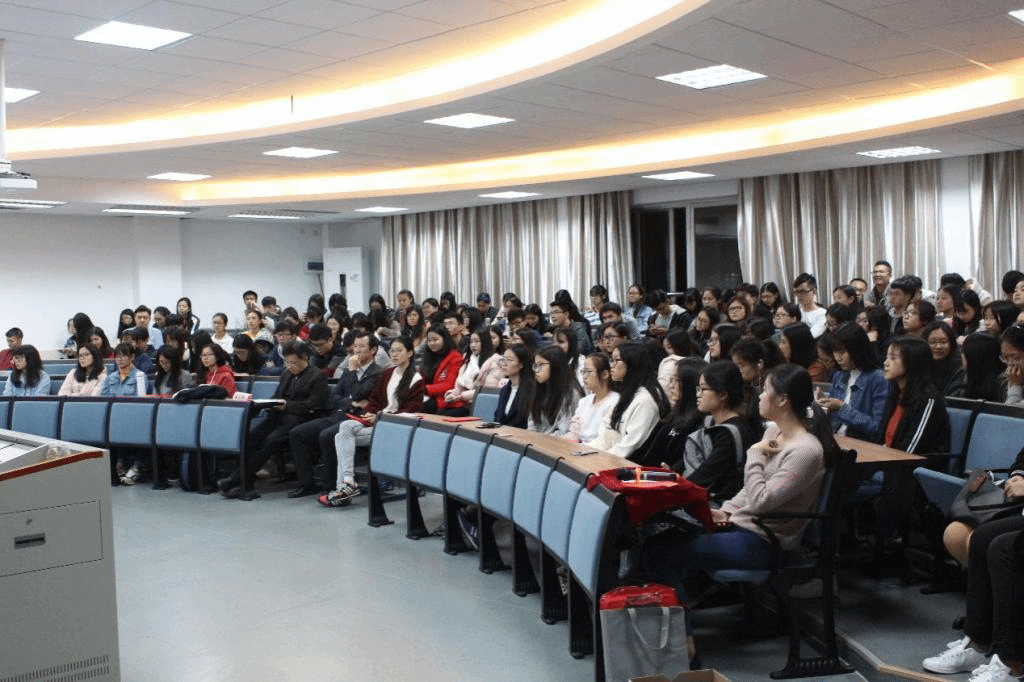 全场座无虚席,同学们认真聆听