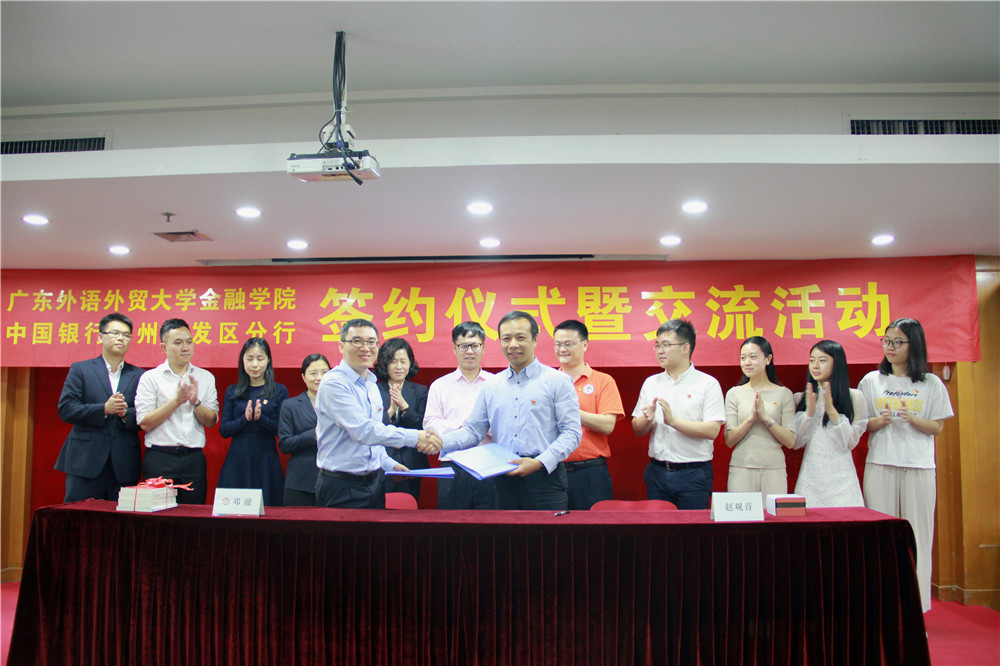 本网讯 为深入贯彻党的十九大精神,落实措施,大力推进从严治党和廉洁教育,加强校企合作与交流,促进公司党委与中国银行广州开发区分行党委的党务与人才培养共建,2018年4月3日,公司党委副书记、纪检委员赵观音携师生党员代表,前往中国银行广州开发区分行参观学习,签订“廉洁伙伴协议”,开展校企合作交流,探讨创新金融人才培养途径等,活动取得圆满成功。中行广州开发区分行党委书记、行长任奔滔,党委委员、副行长邓澈,部分中行中层领导干部以及广外员工代表参加了本次活动。
