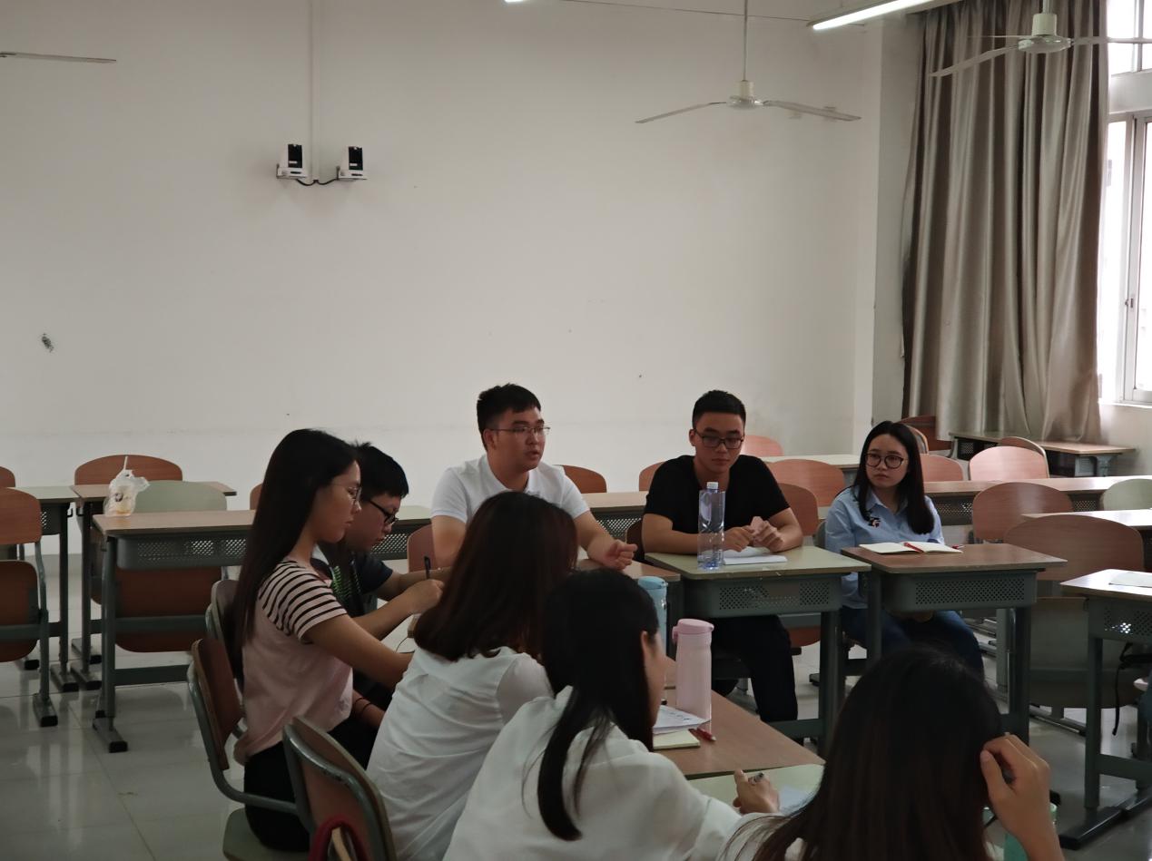2018年5月10日14:00—15:20,太阳城第四十六期入党积极分子在教讨论课的嘉宾有太阳城团委书记、16级辅导员陈璟明老师、金融党建指导老师、17级辅导员林颖璐老师、数学系辅导员薛达老师,正式党员区铭彦、邹书帆、凌志涛、曾国栋,预备党员蔡竣杰、晏子璇、麦泳琪、黄裕彩。