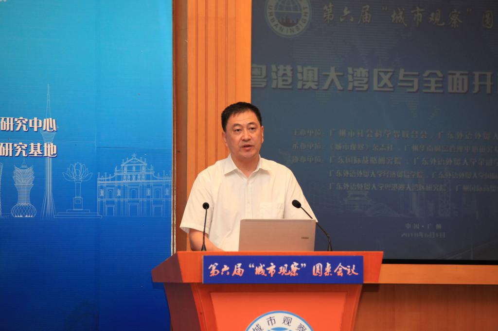 曾伟玉主席在致辞中表示,本次圆桌会议主题的确定主要基于三方面的考虑:一是从国家层面看,粤港澳大湾区和全面开放新格局是推动中国经济高质量发展的重大抓手;二是从区域层面看,粤港澳大湾区是推动形成全面开放新格局的重要平台和门户枢纽;三是从广州自身发展看,作为粤港澳大湾区的核心城市,广州应该发挥排头兵和主力军的引领作用。因此,广州在新时代如何开启开放新征程,如何抓住粤港澳大湾区的重大战略机遇,以全球化视野配置资产和资源,坚持“走出去”和“引进来”并重,发展更高层次更高质量的开放型经济,融入国际一流城市网络,是广州发展面临的重大实践课题,迫切需要社科理论界提供智力支持。